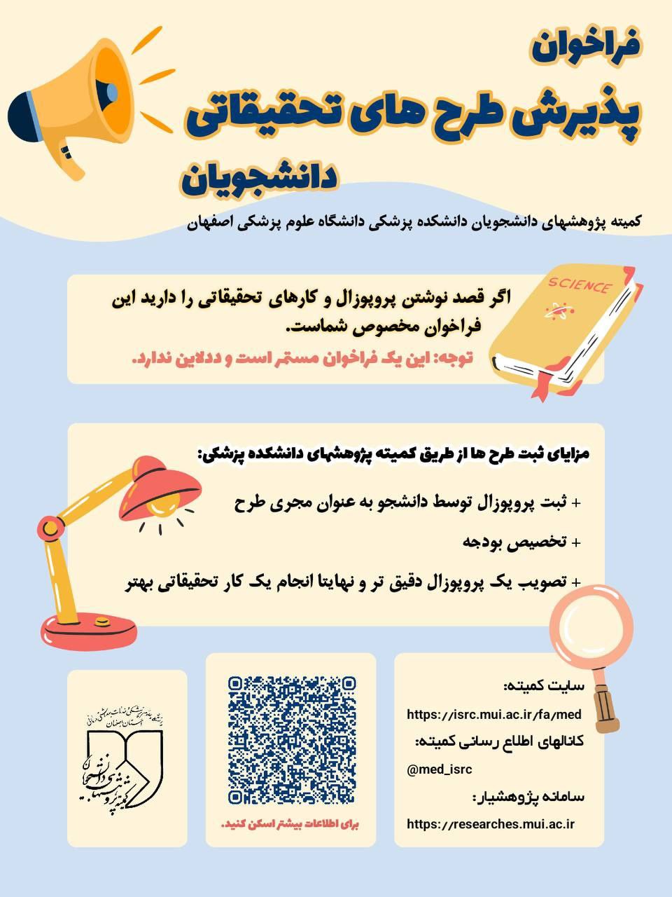 فراخوان پذیرش طرحهای تحقیقاتی دانشجویان در کمیته پژوهشهای دانشکده پزشکی سال 1404