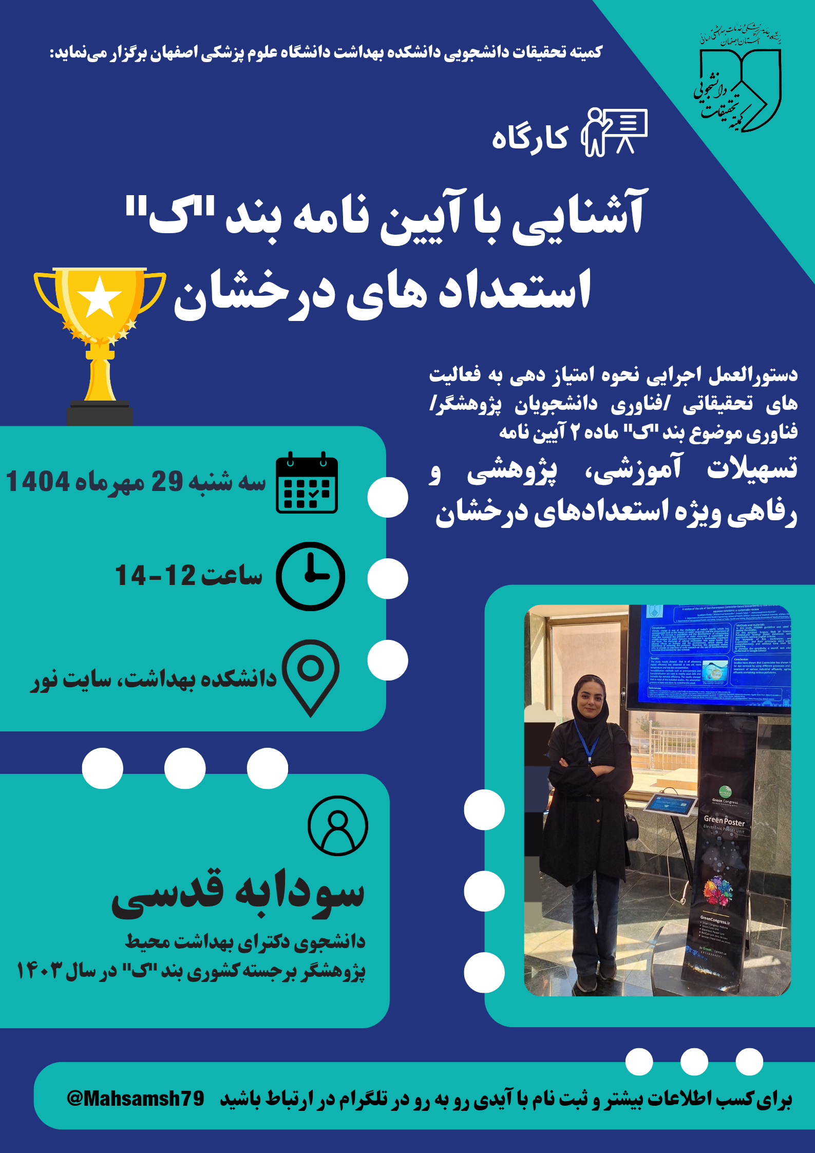 💠کمیته تحقیقات دانشجویی دانشکده بهداشت دانشگاه علوم پزشکی اصفهان برگزار مینماید:
