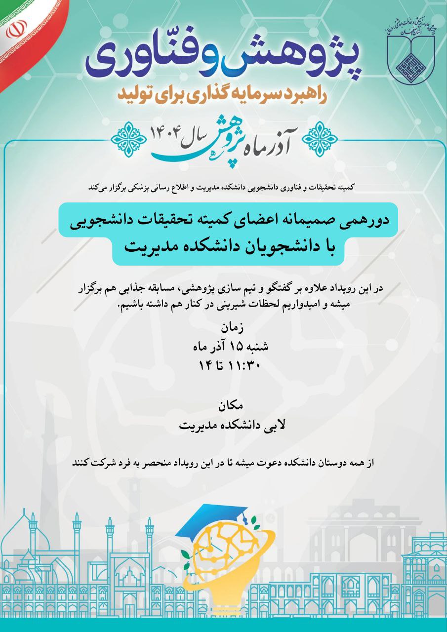 🏫مکان: لابی کمیته تحقیقات دانشکده مدیریت و اطلاع رسانی پزشکی