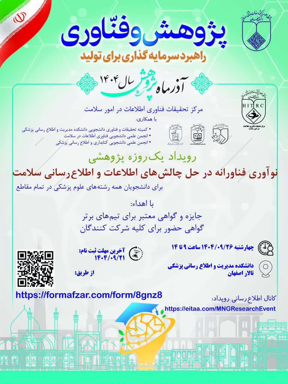 محل برگزاری: دانشکده مدیریت و اطلاع رسانی پزشکی، تالار اصفهان