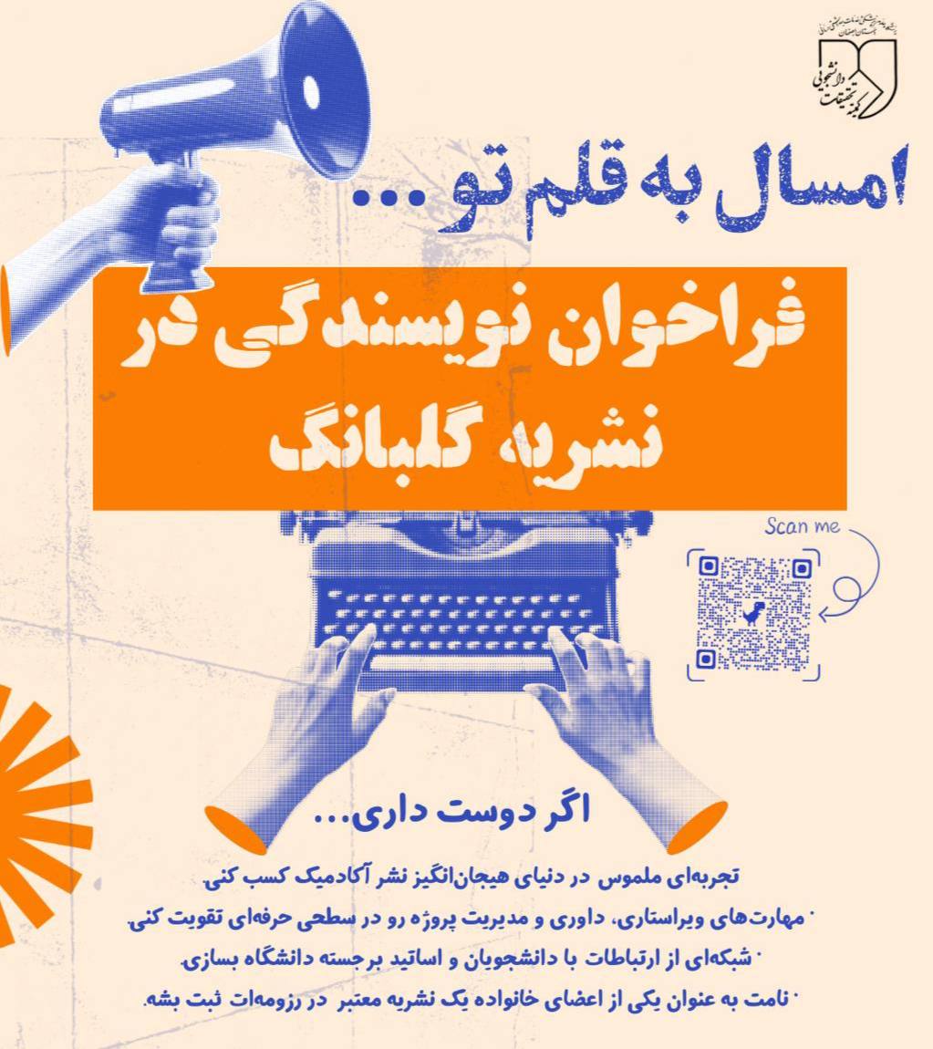 🗞️نشریه گُلبانگ از دانشجویان مستعد و علاقهمند برای همکاری در تیم تحریریه دعوت به عمل میآورد.