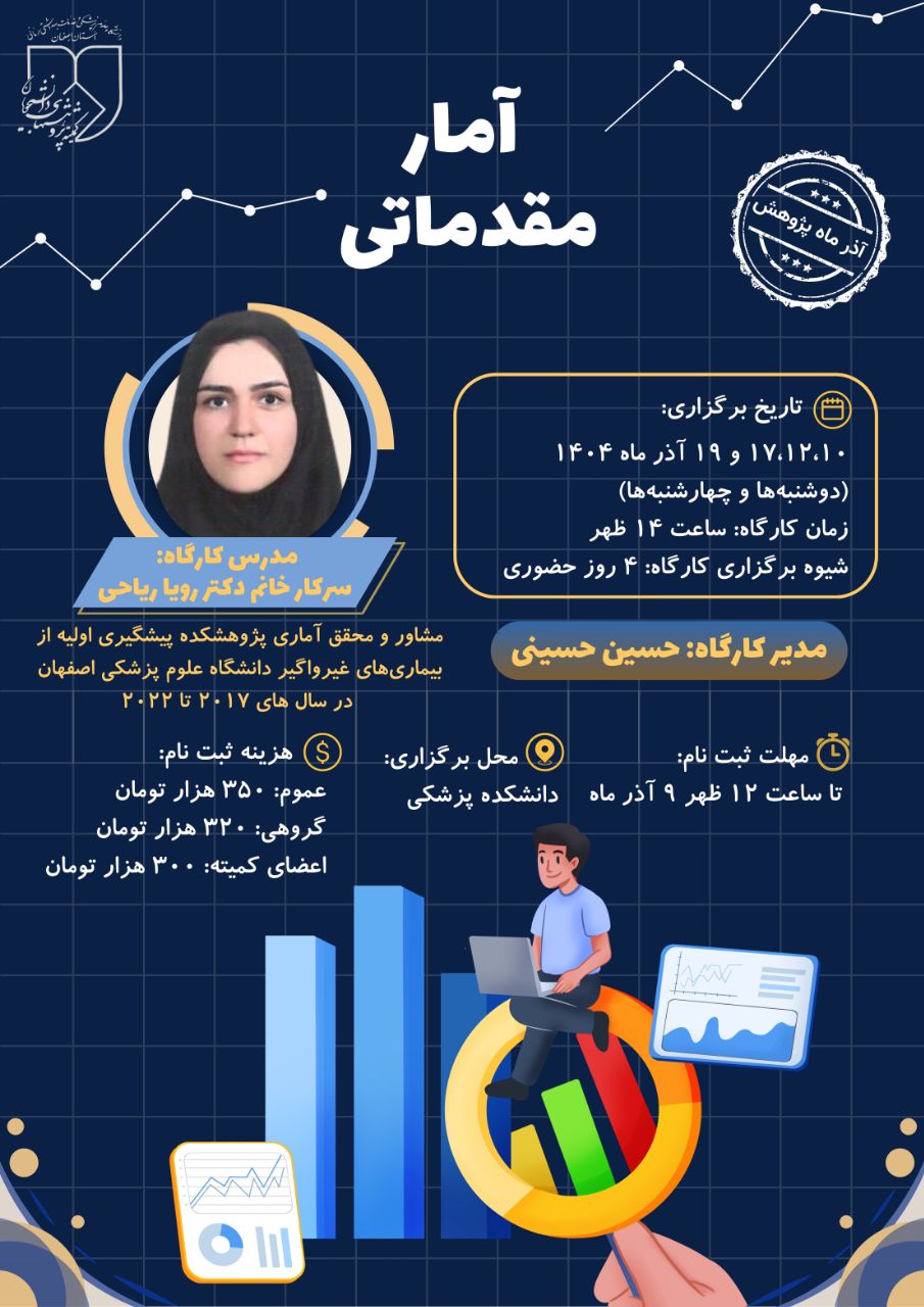 در این کارگاه قراره با مباحث آمار مقدماتی ، اجرای انواع آزمون آماری آشنا بشید و دانش و مهارت خودتون رو برای کار با نرم افزارها و آزمونهای آماری افزایش بدید.
